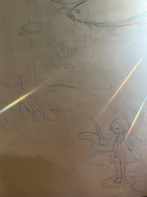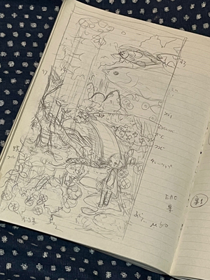 ※制作は基本アナログですが、途中で修正したり構図を確認したりする時は、スマホの描画アプリ(無料のSketchBook)に画像を取り込んで修正箇所を確認したりします。