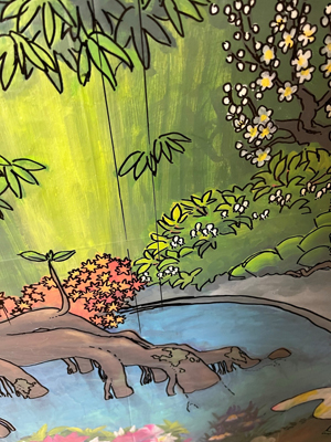 (4)半透明ビニールを掛け、マジックで元の絵の輪郭を取ります。これがないと次の工程でなんにも分からなくなるので私は「地図」と呼んでます。