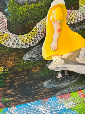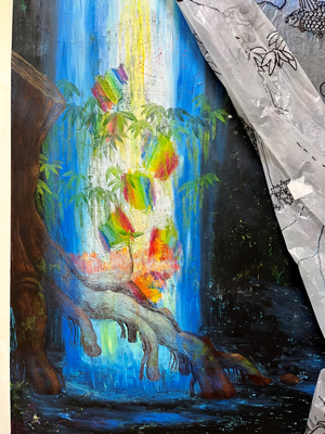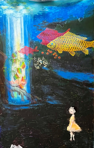 描いた絵をあえていったん埋めて、もう一度掘り起こすことで見えてくる過程は、頭の中で思い出す記憶や、夢に見る光景、生々しく辛かった出来事を一度心の隅にしまって、時を経てもう一度取り出した時の見え方にも似ているように感じています。