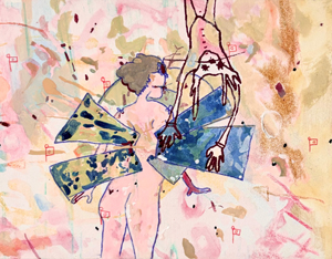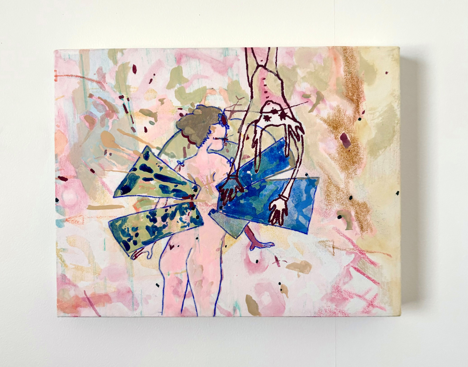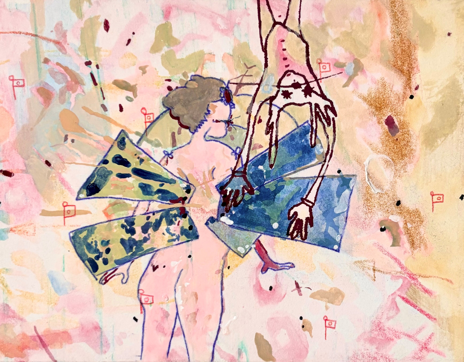 (3)描画:アクリル絵の具、グロスメディウム、色鉛筆
