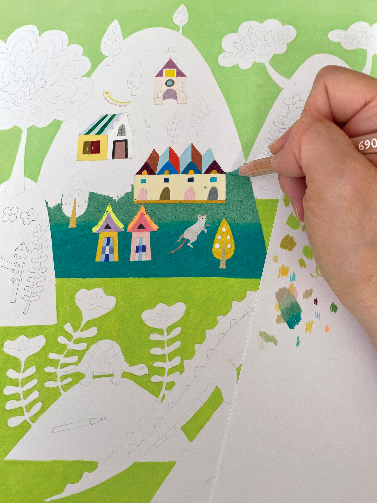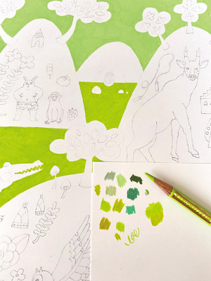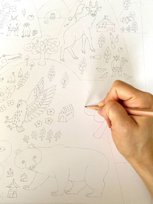 丁寧に、色鉛筆をムラなく塗り込むことを意識しています。