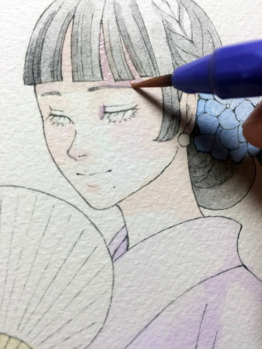 影の部分も少しずつ塗り進めていきますが、特に肌の影は濁らないよう気をつけます。(画像9)