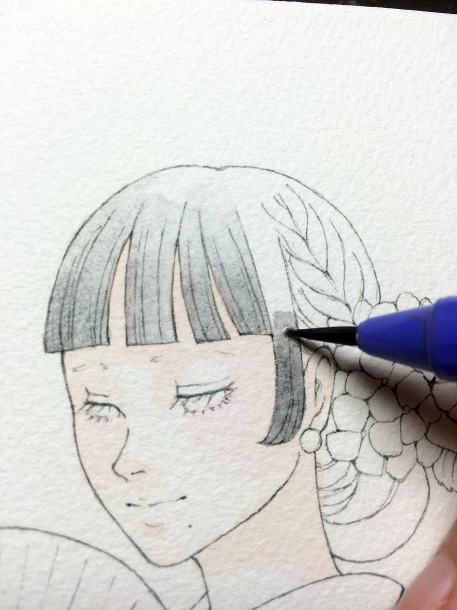 画像4:グレーのミリペンでペン入れ。 |