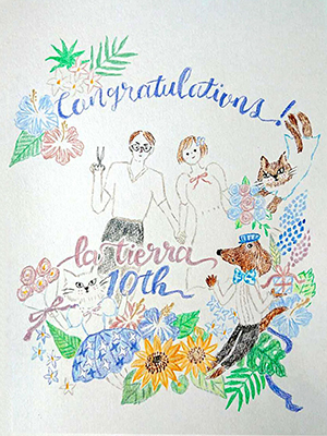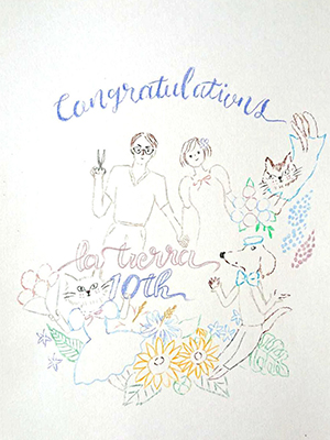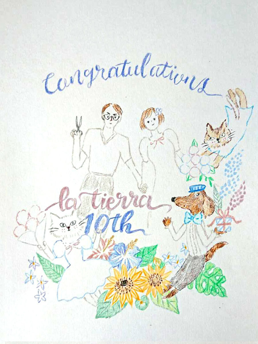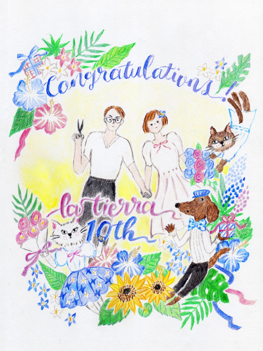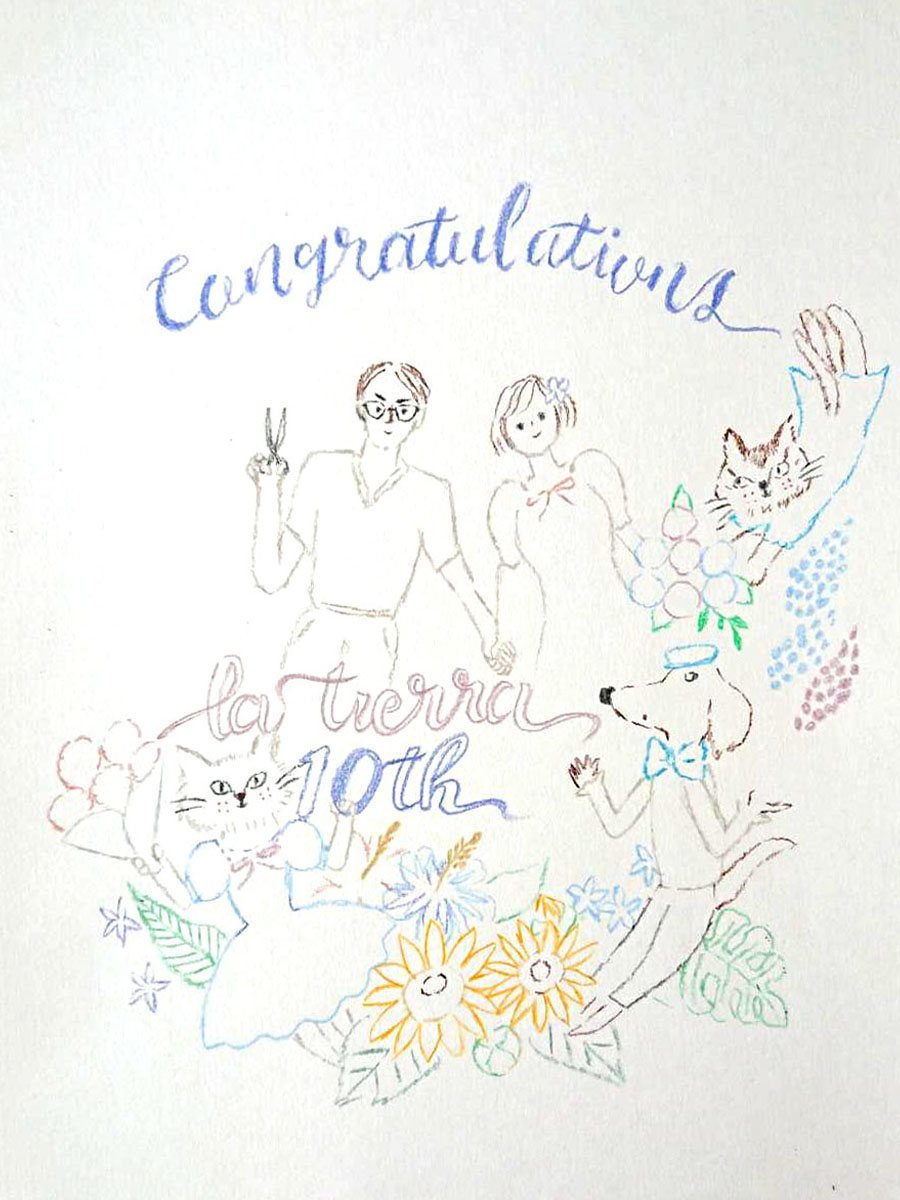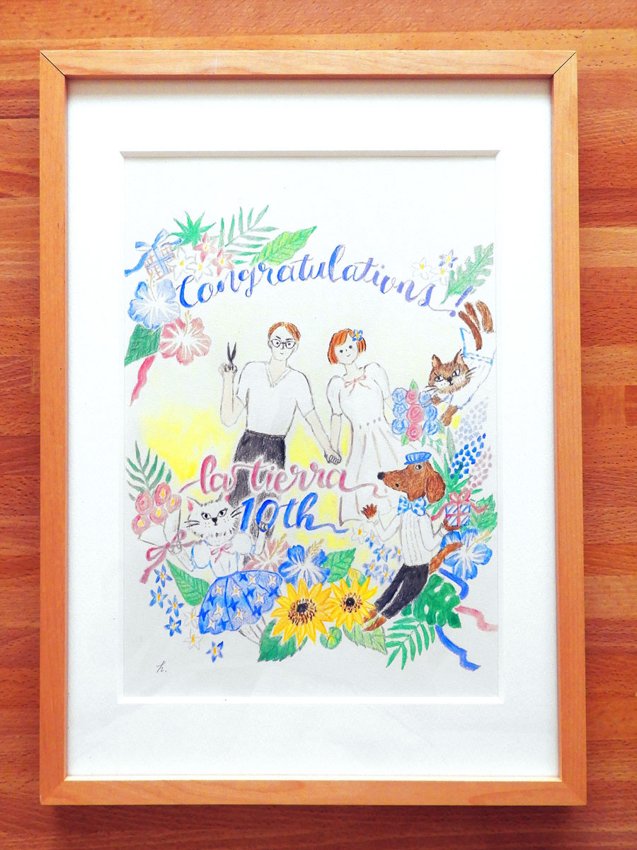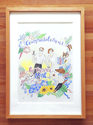 夏らしい黄色をアクセントにし、ふんわりしたタッチと色筆の優しいテクスチャーを生かした、ナチュラルな雰囲気のあたたかみ溢れる作品になりました。
