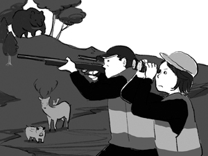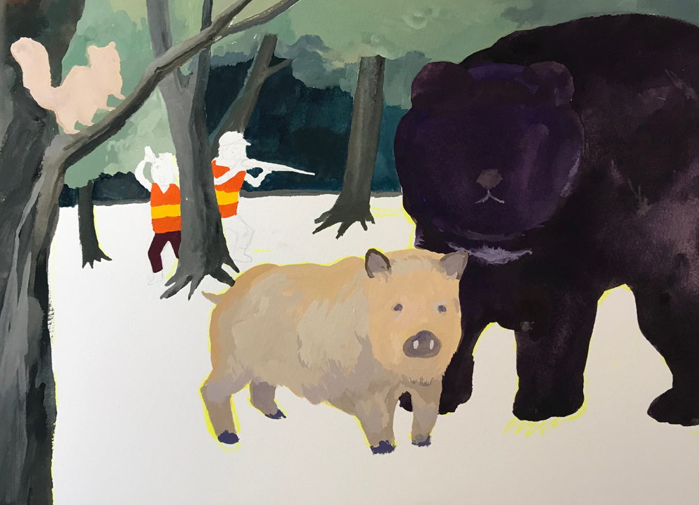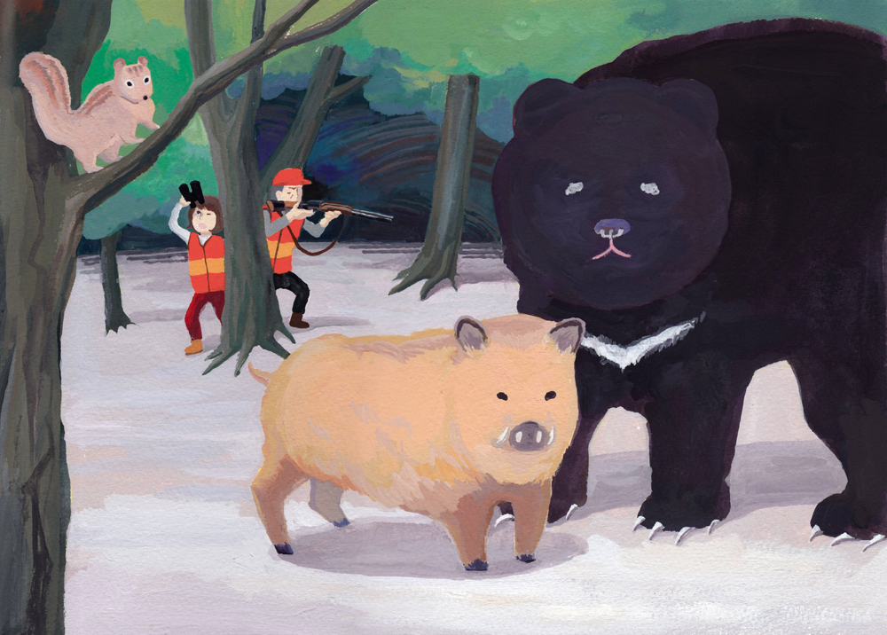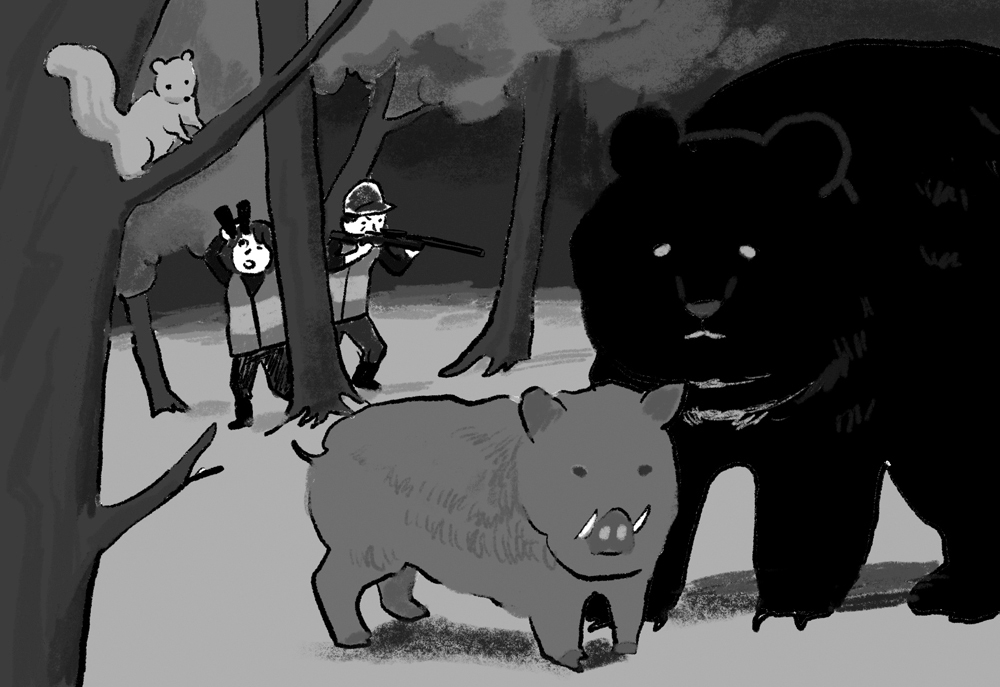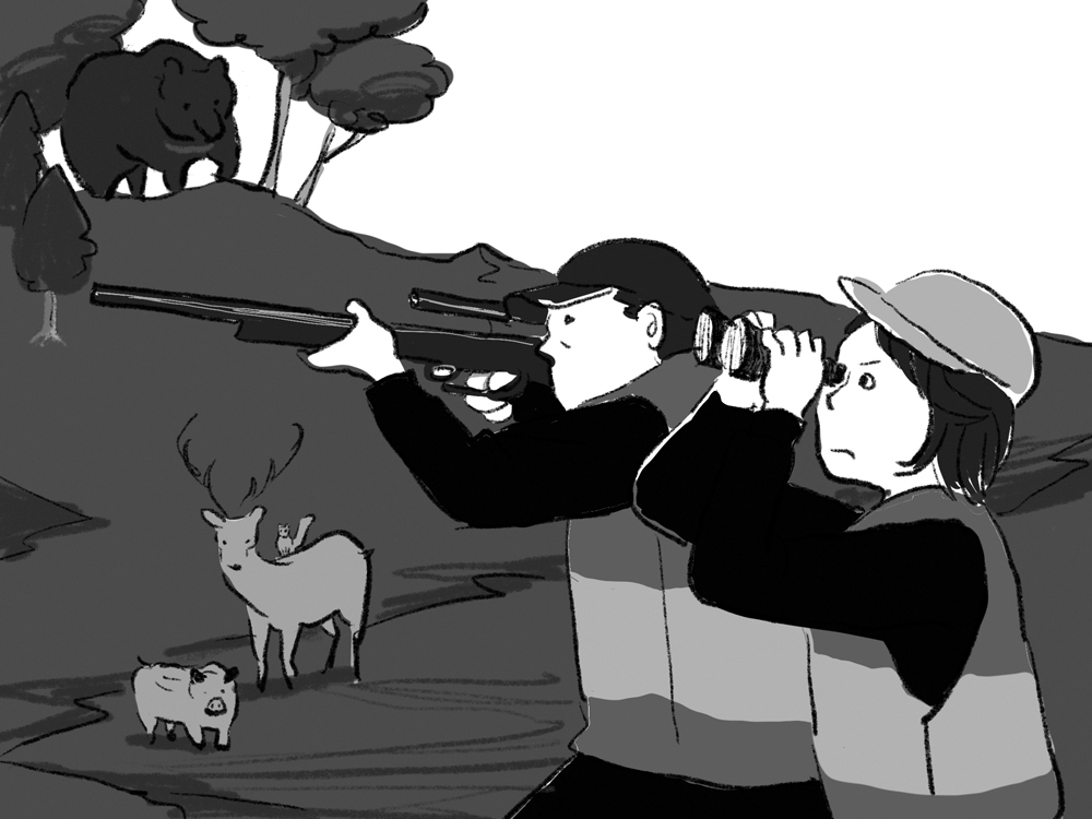 雑誌の雰囲気も明るいポップなイメージなので、「狩猟」の対象である動物たちを尊い存在として描きつつ、イラストとしての可愛らしさもあるように心がけます。