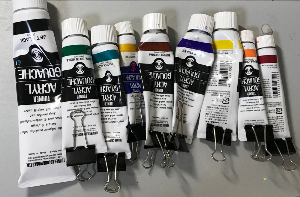 使用するアクリルガッシュは7色程度。(クリックで拡大) |
