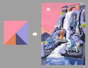 以上のように、さまざまな要素を選択し、組み合わせることのプロセスが、絵を描くことの面白さそのものだと思います。正解はなく、あくまでも私のやり方ですが、それがゆえに私の絵の個性なのでしょう。