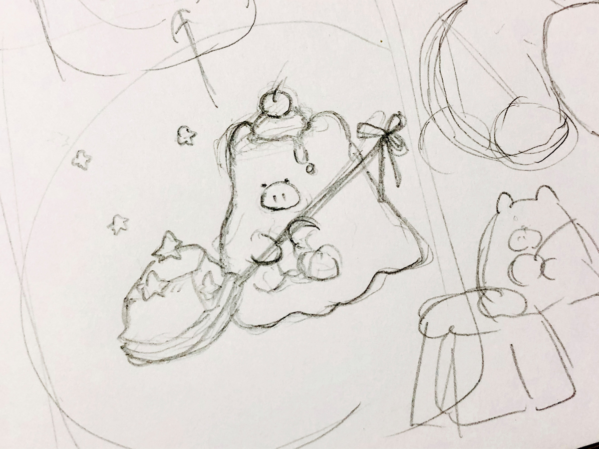 ラフ。ゼリーとブタをモチーフに。(クリックで拡大) |