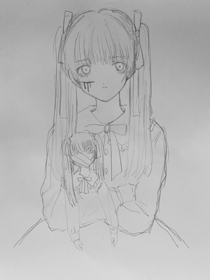 ●人形を持つダークな少女を描く