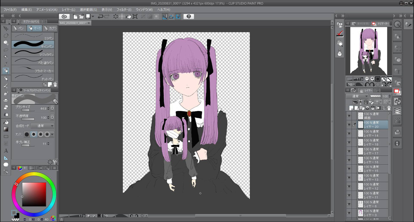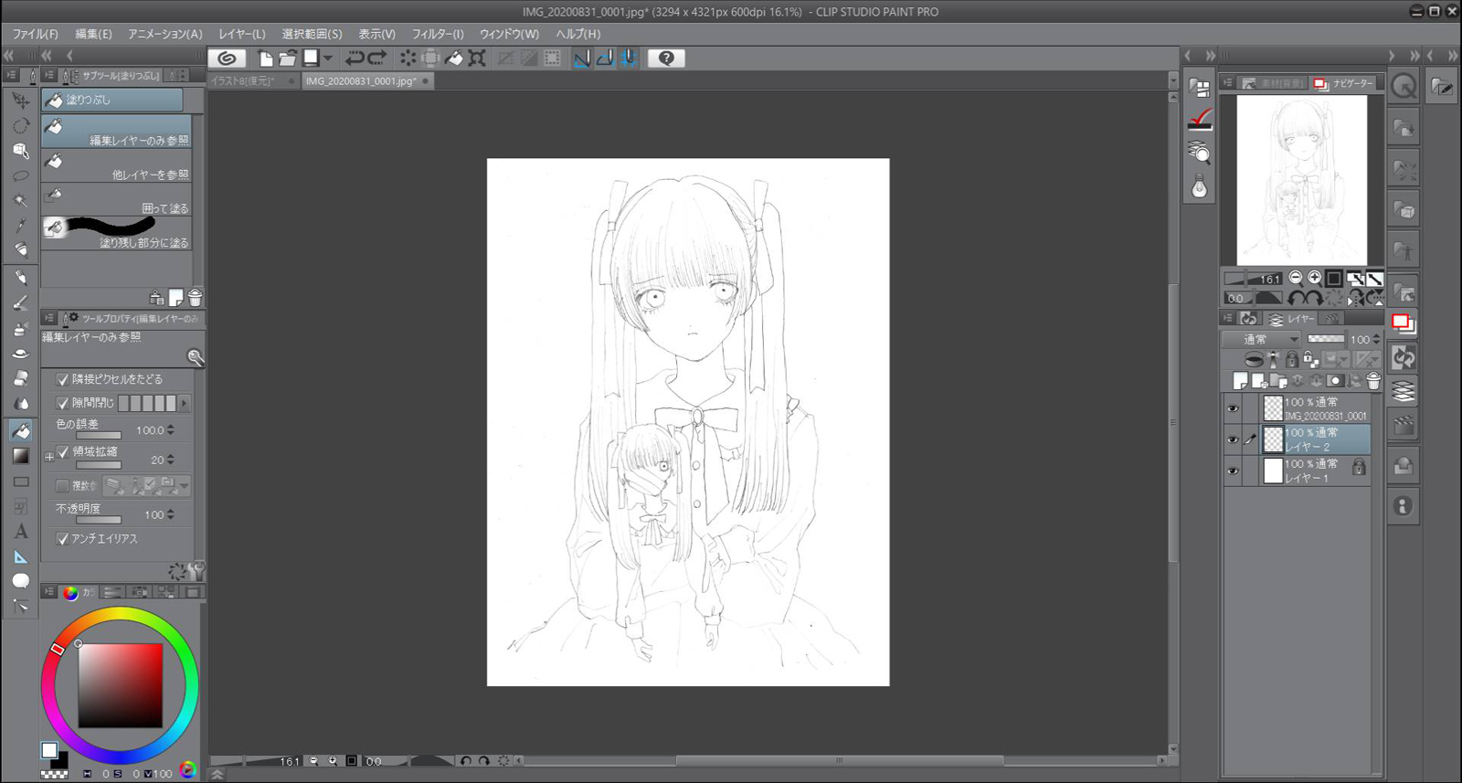 下描きをスキャンしてCLIP STUDIO PAINTに取り込む。線画以外を透明に。(クリックで拡大) |