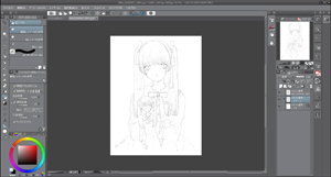 まずラフで絵を描き込んでいきます。そしてトレース台を使って裏から光を当てて線画を作ります。それをスキャンして、CLIP STUDIO PAINTで開きます。