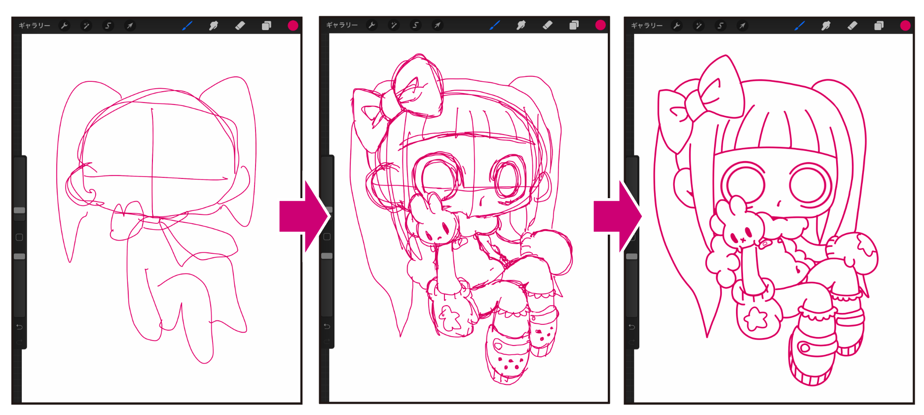 iPadでProcreateを使ってラフから線画までを描く。(クリックで拡大) |