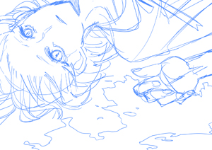 ラフスケッチの段階からPCで描く。(クリックで拡大)