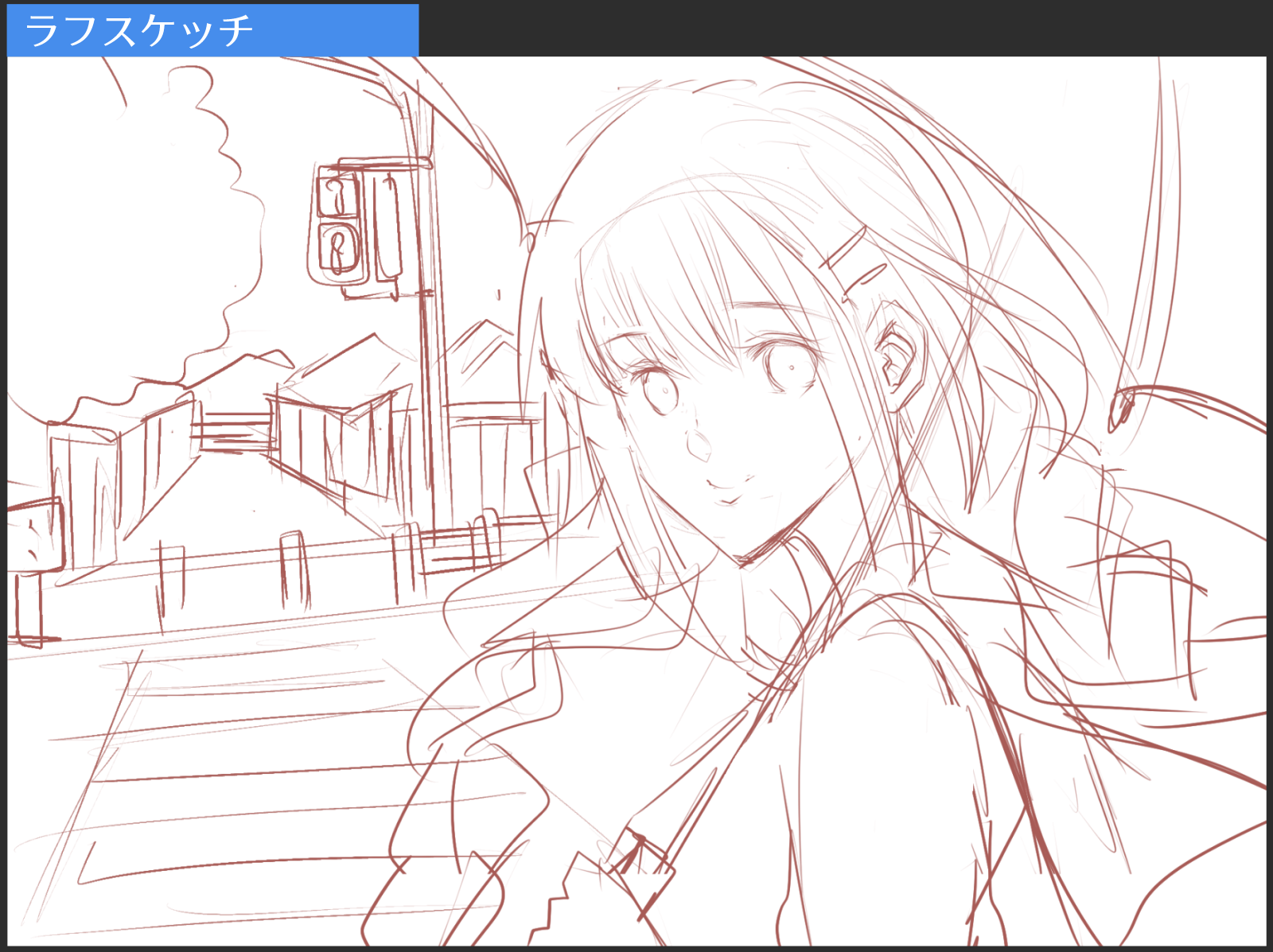 iPadに下描きのラフスケッチを描きます。ここでイメージ通りにならなくて挫けそうなことがあるかもしれませんが、その時は「後で何とかなる」と言い聞かせながら描き進めます。