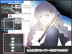 違ったエフェクトのレイヤーを用意してイラストを仕上げていきます。