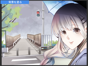 背景もレイヤーに分けて色塗り。(クリックで拡大) |