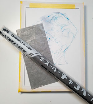 チャコペーパーで下絵を写す。(クリックで拡大) |
