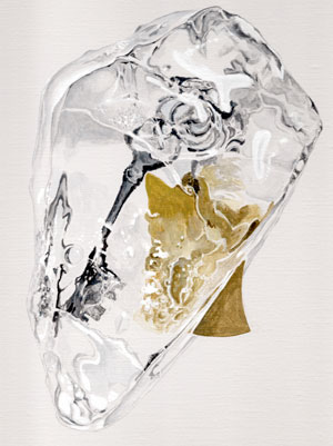 遠回しな表現方法かもしれませんが、このように見て欲しいと強制するのではなく、見る人ごとの感じ方、想像の仕方に委ねることができるように、なるべく余計なものを削って表現できればと思います。氷の中に鍵が閉じ込められていたら何をどんな風に感じてもらえるでしょうか?