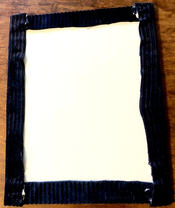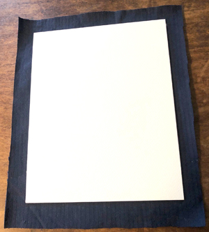 額の中に入っている芯の紙を使い、そこに布をボンドで貼り付けます。