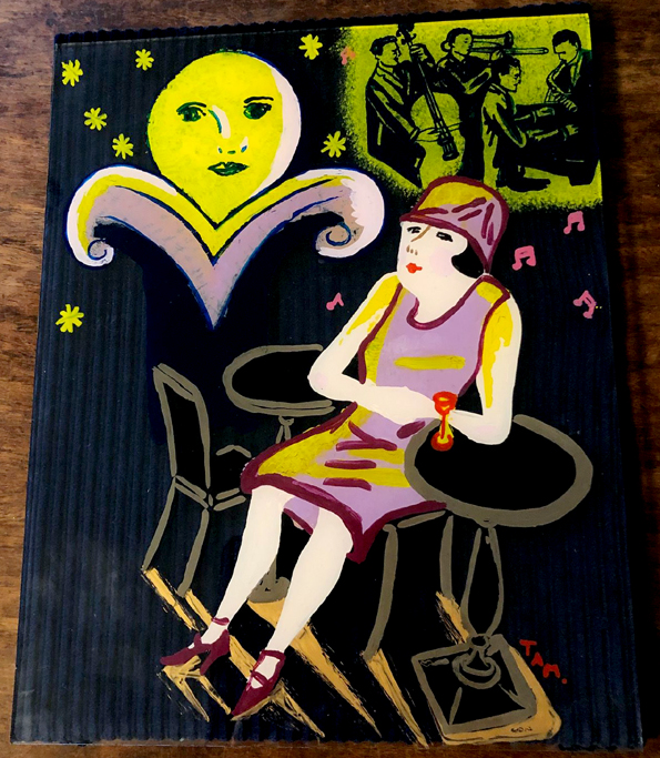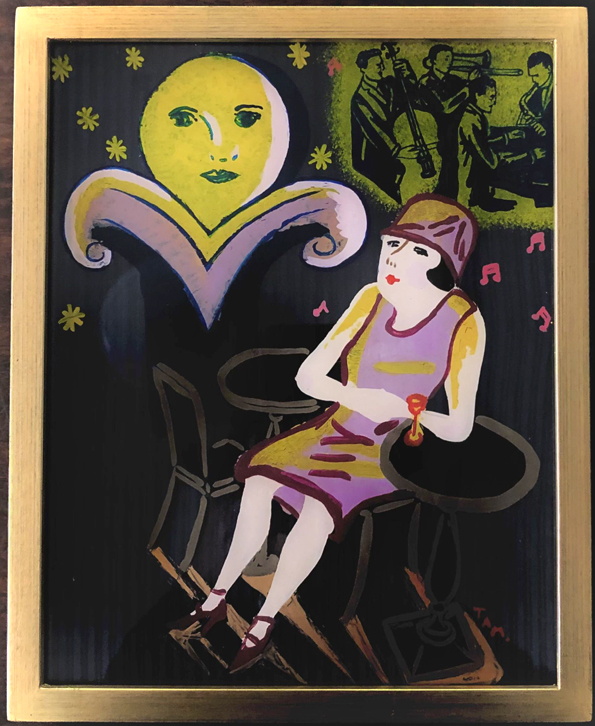2023年 5月の俳句「ジャズライブ 余韻の甘き 夏の宵」をテーマに描いたガラス絵で制作過程を説明させていただきます。