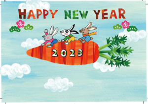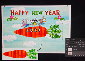 グッドファーム・プランニング様(以後GFP) の仕事で制作しました2023年卯年年賀状でのコラージュイラスト制作について説明します。